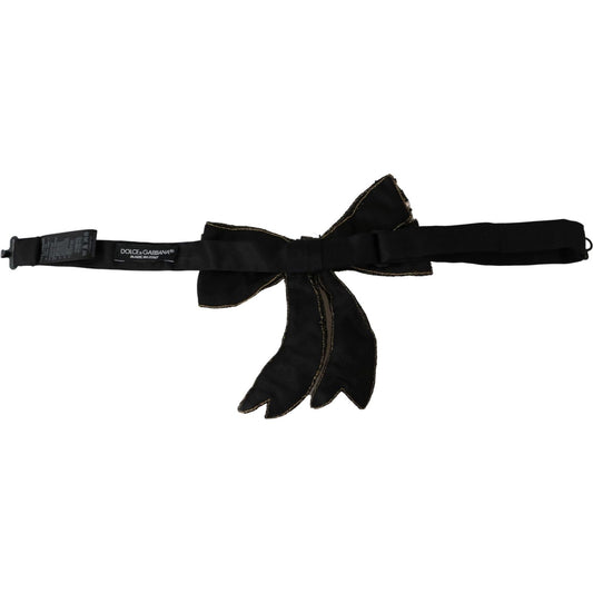 Dolce & Gabbana Gold Tone Silk Rhinestone Embellished Women Bowtie