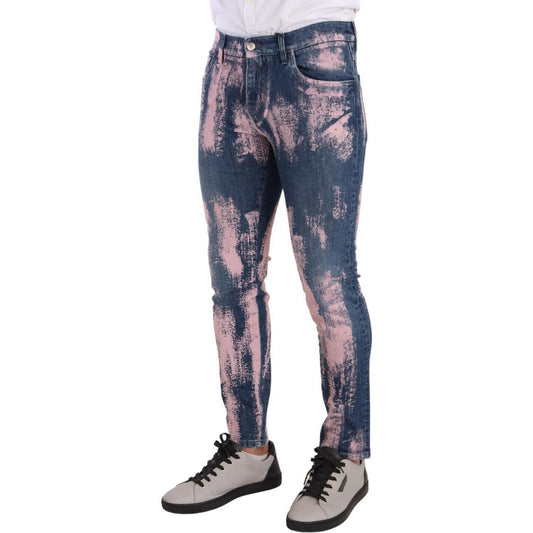 Dolce & Gabbana Blue Pink Tie Dye Cotton Skinny Denim Jeans