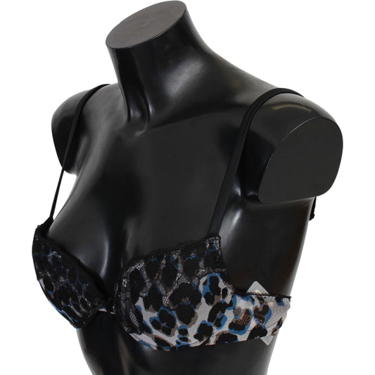 Roberto Cavalli Black Leopard Nylon Push Up Bra Underwear