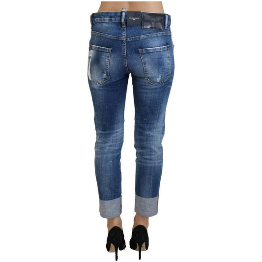 Dsquared² Blue Cotton Mid Waist Cropped Denim Jeans Cool Girl