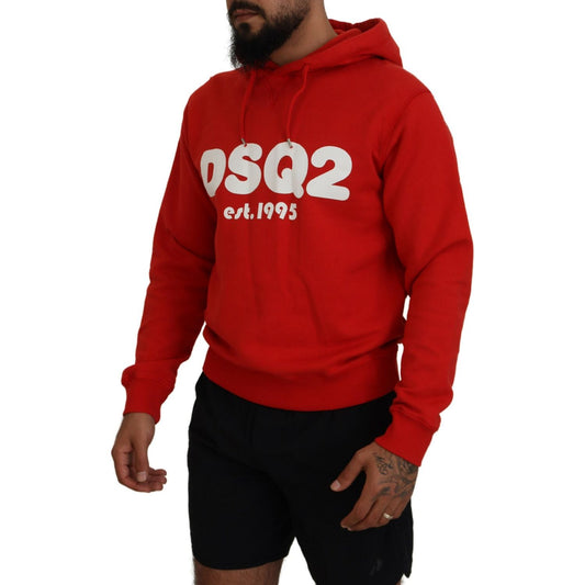 Dsquared² Red Cotton Hooded Printed Men Pullover Sweater