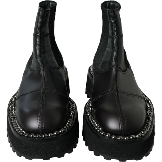 Dolce & Gabbana Black Leather Slip On Stretch Chelsea Boots Shoes