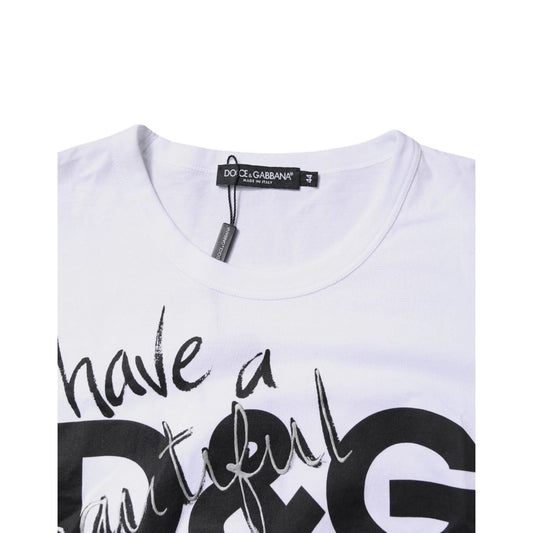 Dolce & Gabbana White Graphic Print Cotton Crew Neck T-shirt