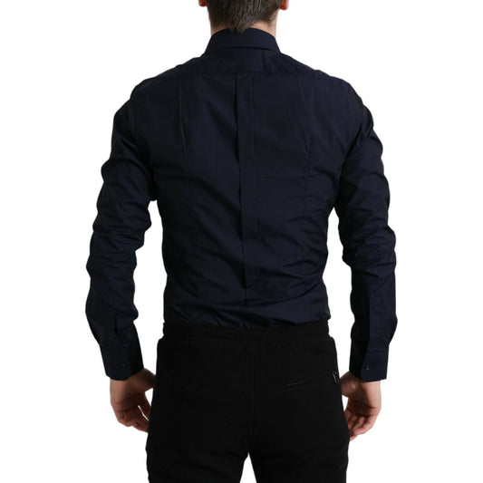 Dolce & Gabbana Navy Blue Cotton Collared Formal Dress Shirt