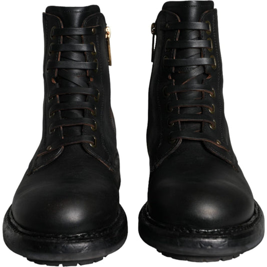 Dolce & Gabbana Black Lace Up Mid Calf Boots Men Shoes