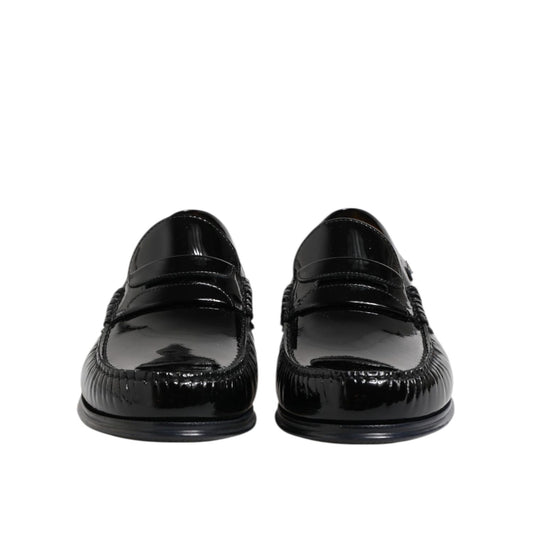 Dolce & Gabbana Black Calfskin Leather Slip On Loafers Shoes