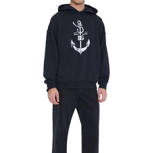 Dolce & Gabbana Black Hooded Pullover Men Sweatshirt Sweater