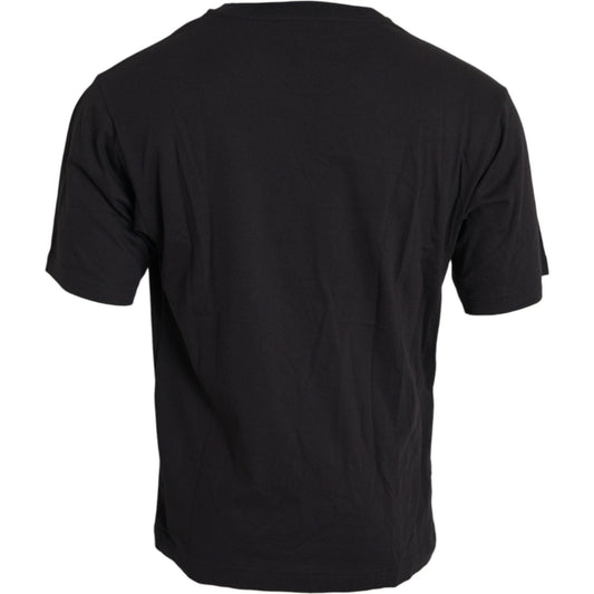 Dolce & Gabbana Black Printed Pocket Cotton Crewneck T-shirt