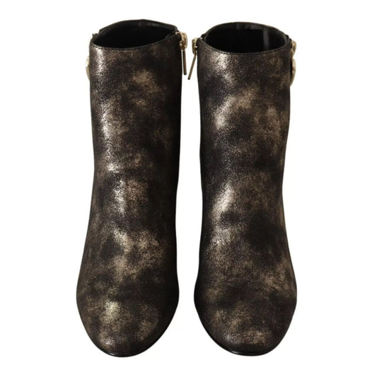 MY TWIN Black Leather Block Heels Ankle Boots Zipper Shoes
