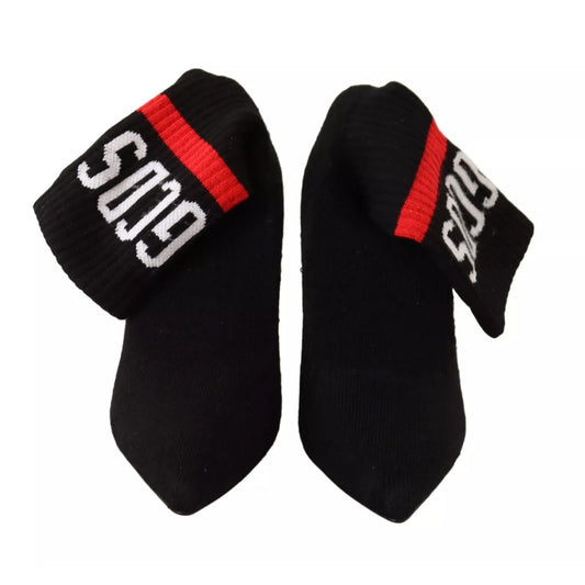 GCDS Black Suede Logo Socks Block Heel Ankle Boots Shoes