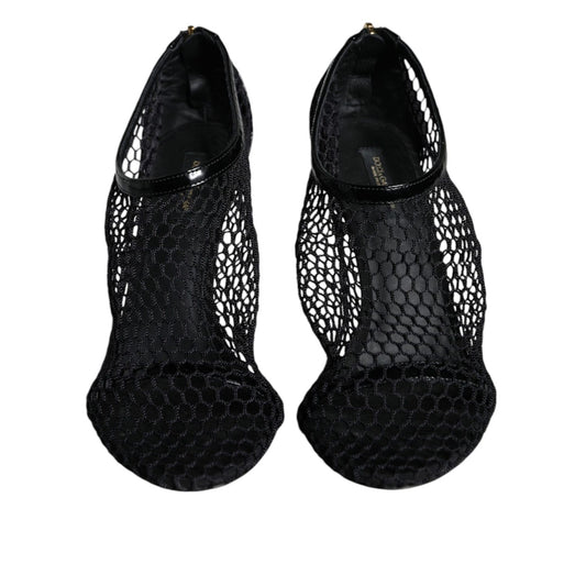 Dolce & Gabbana Black Mesh Leather Heels Keira Sandals Shoes
