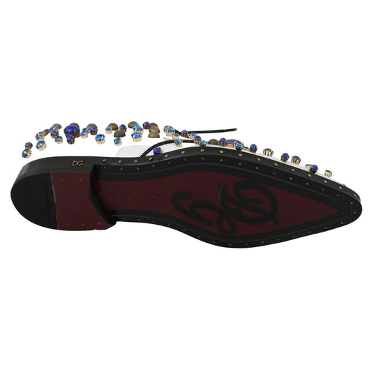Dolce & Gabbana White Leather Crystals Dress Broque Shoes