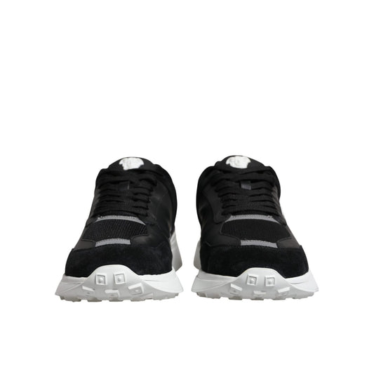Versace Black Leather Neoprene Chunky Low Top Sneakers Squalo Shoes