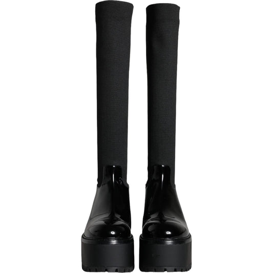 Dolce & Gabbana Black Patent Leather Knee High Boots Shoes