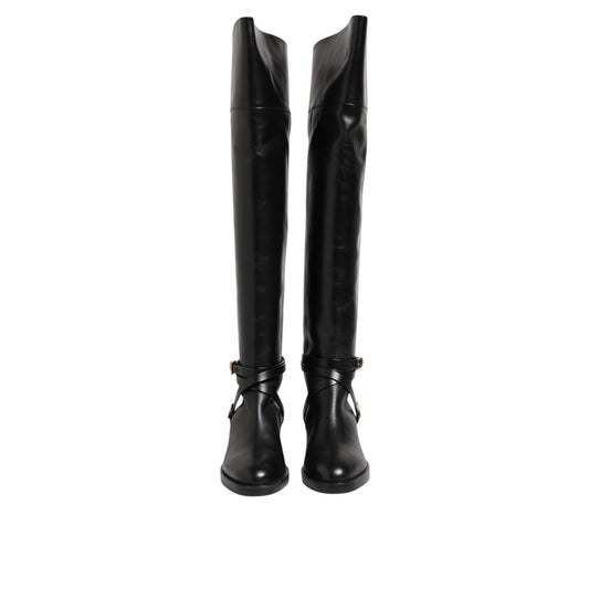 Dolce & Gabbana Black Leather Over-The-Knee DG Boots Shoes