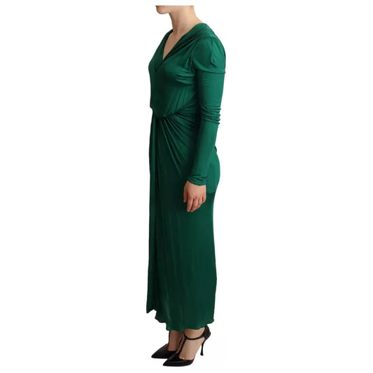 Dolce & Gabbana Dark Green Viscose Long Sleeve Midi Dress