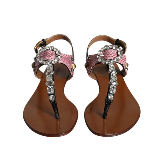 Dolce & Gabbana Multicolor Rhinestone Flip Flop Flat Sandals Shoes