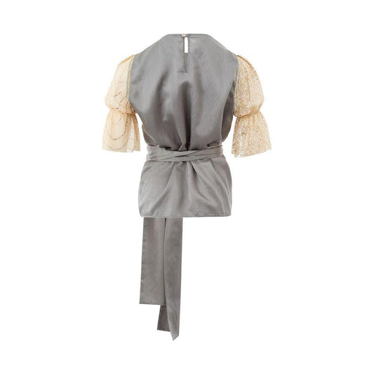 Dolce & Gabbana Gray Silk Gold Sequin Lace Blouse Shirt