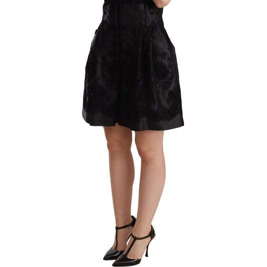 Dolce & Gabbana Black Floral Brocade High Waist Mini Shorts