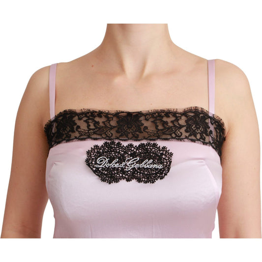 Dolce & Gabbana Silk Black Lace Top Pink Tank Blouse