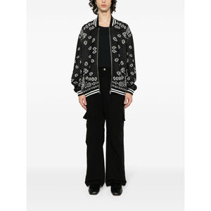 black/white cotton knitted construction paisley print striped edge band collar front zip fastening long sleeves two side slit pockets straight hem Bandana Piquet cotton bomber jacket Size and Fit - This piece fits true to size. We recommend you get your regular size. Model is 1,84m / 6ft 1in wearing size M