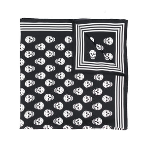 Incorporate Alexander McQueen's signature skull motif into everyday looks with this black and white silk mini skull print scarf. Featuring finished edges, a skull pattern and a printed logo. Skull silk scarf