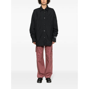 gingham-check padded shirt jacket from AMBUSH featuring gingham check pattern, logo patch at the sleeve, front button fastening, buttoned cuffs, chest patch pocket, drawstring hem, logo-print lining, quilted lining, black, cotton blend, padded design, classic collar, long sleeves and curved hem. Cotton blend jacket Size and Fit - This piece fits true to size. We recommend you get your regular size. Model is 1,84m / 6ft 1in wearing size M