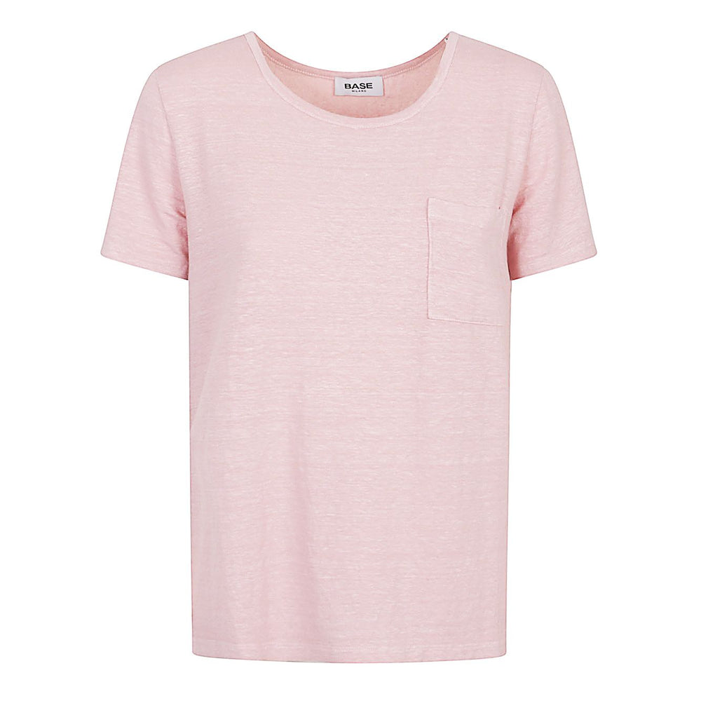 Pink T-shirt, half sleeves, crew neck, patch pocket on the chest, straight hem. Linen t-shirt Size and Fit - This piece fits true to size. We recommend you get your regular size. Model is 1,75m / 5ft 8in wearing size 40 (IT)