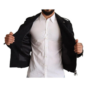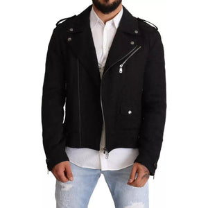 Dolce & Gabbana Black Brocade Full Zip Biker Coat Jacket