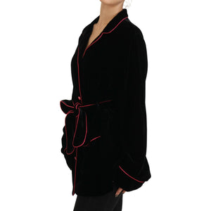 Dolce & Gabbana Black Button Belted Blazer Viscose Jacket