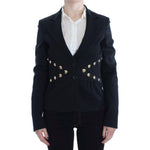 Exte Black Cotton Stretch Gold Studded Blazer Jacket Blazer Jacket