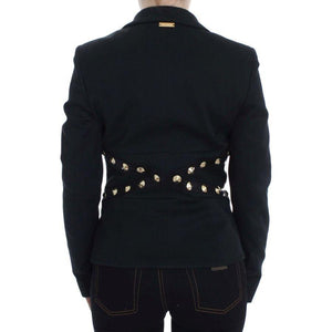 Exte Black Cotton Stretch Gold Studded Blazer Jacket