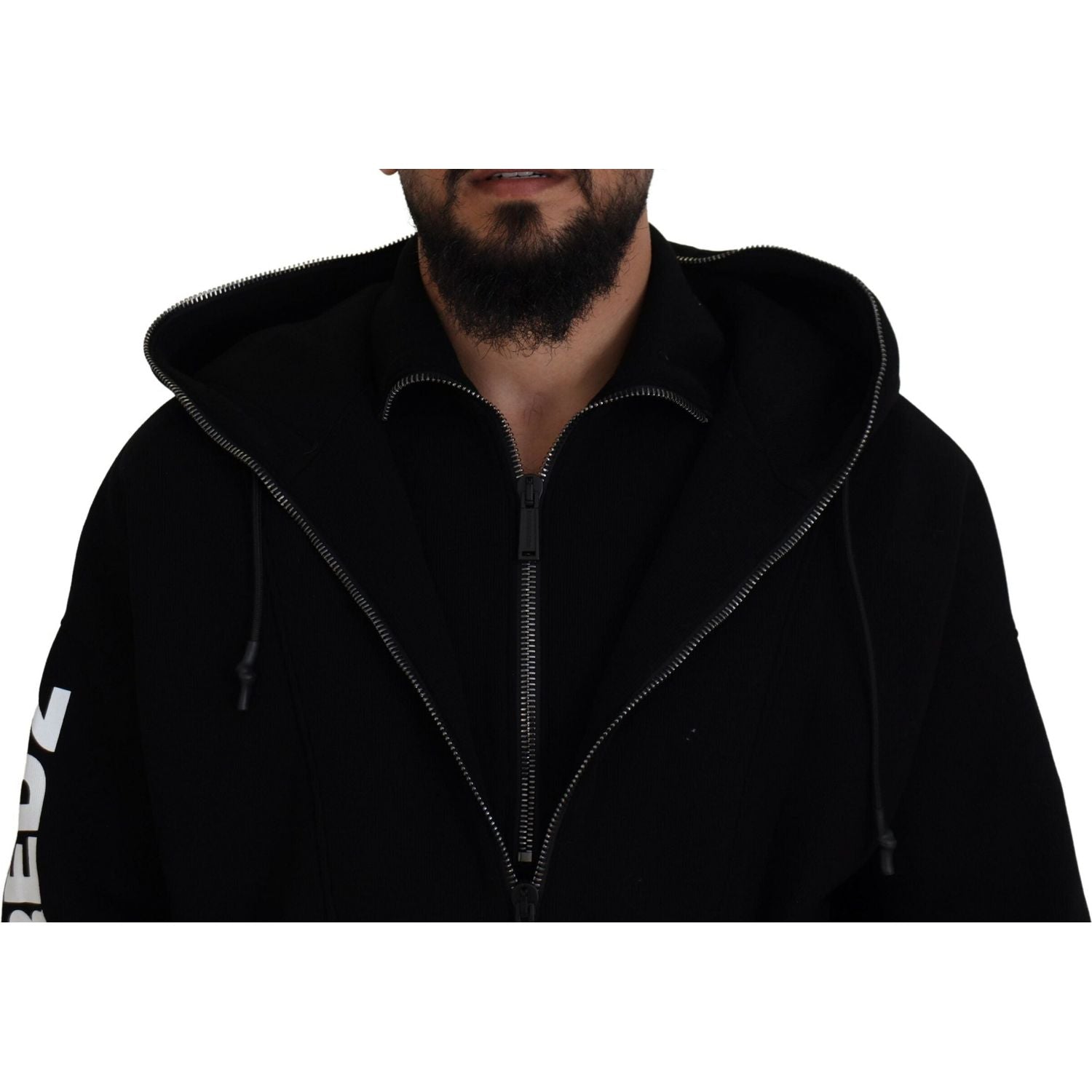 Dsquared² Black Hooded Printed Sleeves Double Zip Sweater