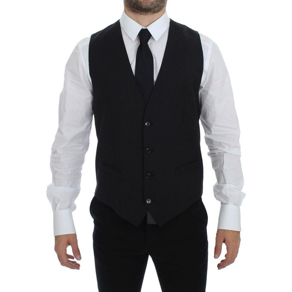 Dolce & Gabbana Black Striped Wool Single Breasted Vest