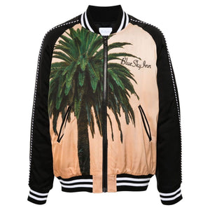 black/multicolour padded design all-over graphic print ribbed band collar long raglan sleeves piped-trim detailing to the sleeve ribbed cuffs and hem striped borders embroidered logo at the chest two front jetted pockets internal slip pocket full lining front zip fastening Logo varsity jacket Size and Fit - This piece fits true to size. We recommend you get your regular size. Model is 1,84m / 6ft 1in wearing size M