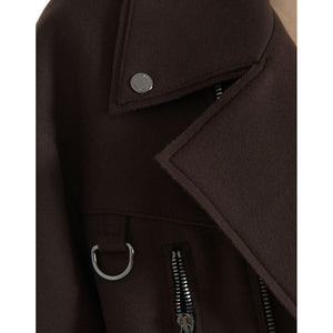 Dolce & Gabbana Brown Coat Short Biker Wool Jacket