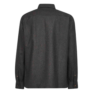 Back view of Brunello Cucinelli Long-sleeve flannel overshirt in brown with buttoned cuffs and polo collar.