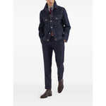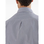white and navy blue vertical stripe pattern long sleeves button cuffs classic collar front button closure Cotton shirt