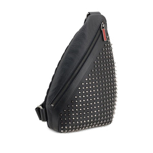 black front zip fastening adjustable shoulder strap spike stud detailing Funky Slingback leather backpack