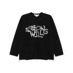 black jersey texture 'Strong Will' sequin embellishment crew neck long sleeves straight hem Sequined t-shirt Size and Fit - This piece fits true to size. We recommend you get your regular size. Model is 1,75m / 5ft 8in wearing size 1 (NUM)