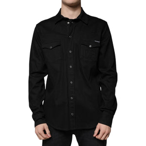 Dolce & Gabbana Black Cotton Collared Button Down Shirt