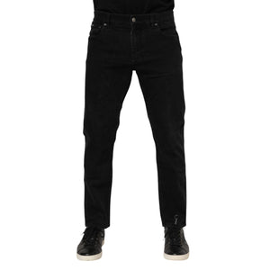 Dolce & Gabbana Black Cotton Logo Plaque Slim Fit Denim Jeans