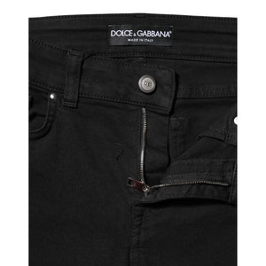 Dolce & Gabbana Black Cotton Logo Skinny MidWaist Denim Jeans