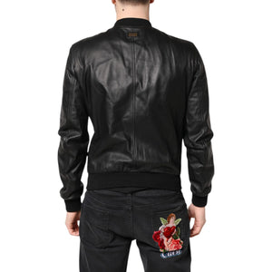 Dolce & Gabbana Black Lambskin Leather Full Zip Biker Jacket