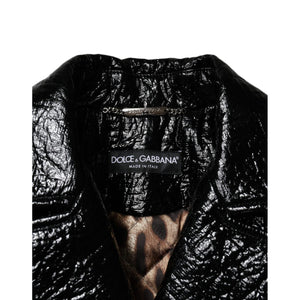 • Dolce & Gabbana Black Leather Cropped Long Sleeve Coat Jacket