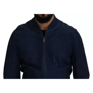 Dolce & Gabbana Blue Leather Perforated Full Zip Jacket