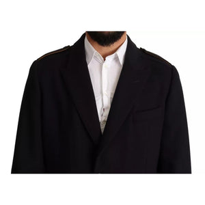 Dolce & Gabbana Blue Trench Coat Long Wool Stretch Jacket