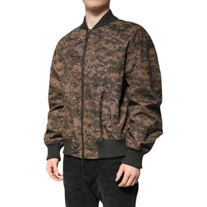 Dolce & Gabbana Brown Camouflage Bomber Full Zip Jacket