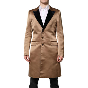 Dolce & Gabbana Brown Silk Single Breasted Trench Coat Jacket