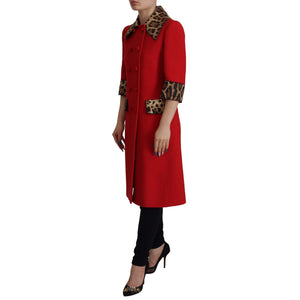 Dolce & Gabbana Red Leopard Wool Trenchcoat Jacket